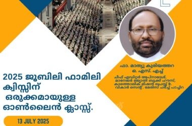 കോട്ടയം: 2025 ജൂബിലി ഫാമിലി ക്വിസിന ്ഒരുക്കമായുള്ള ഓണ്ലൈന് ക്ളാസുകള് ആരംഭിച്ചു. ജൂലൈ 13 ന് വൈകിട്ട് 8.30ന് നടക്കുന്ന ക്ളാസ് അപ്നാദേശ് ചീഫ്…