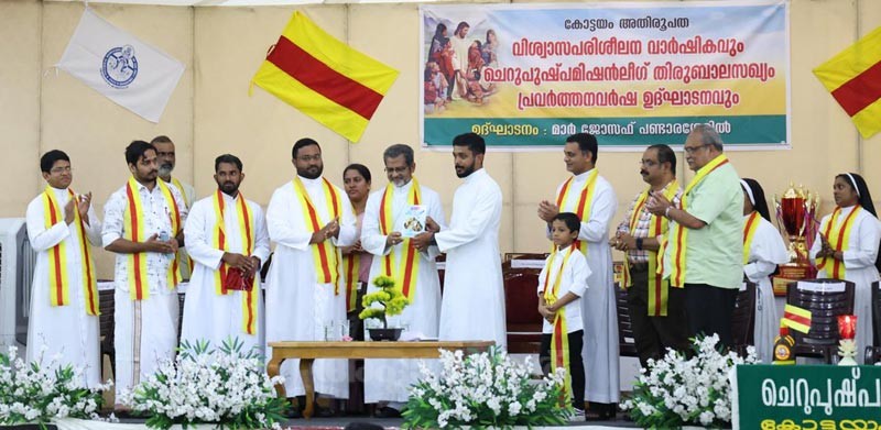 വിശ്വാസപരിശീലനം, തിരുബലസഖ്യം, മിഷന് ലീഗ് & ബൈബിള് കമ്മീഷന് 2025- 2026 പ്രവര്ത്തന മാര്ഗ്ഗരേഖ മാര്. ജോസഫ് പണ്ടാരശ്ശേരില് പിതാവ് മിഷന് ലീഗ് മുന് അതിരൂപത ഡയറക്ടറും ഇപ്പോള് പടമുഖം ഫോറോന മിഷന് ലീഗ് ഡയറക്ടറുമായ ഫാ. ഷെറിന് കുരുക്കിലേട്ടിന് നല്കി പ്രകാശനം ചെയ്യുന്നു