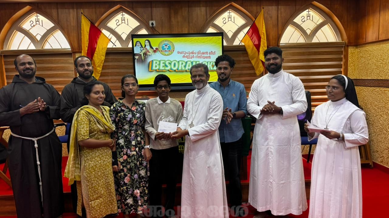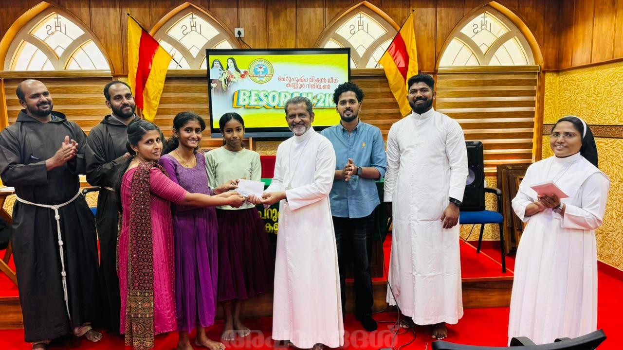 ശ്രീപുരം: ചെറുപുഷ്പ മിഷന്‍ ലീഗ് കണ്ണൂര്‍ റീജിയന്റെ ആഭിമുഖ്യത്തില്‍ മലബാര്‍ റീജിയണിലെ ചെറുപുഷ്പ മിഷന്‍ ലീഗ് അംഗങ്ങള്‍ക്ക് വേണ്ടി ബസോറ 2K26 – മിഷന്‍ ക്വിസ് മത്സരം ശ്രീപുരം ബറുമറിയം പാസ്റ്ററല്‍ സെന്ററില്‍ വച്ച് നടത്തപ്പെടുകയുണ്ടായി. മൂന്നുപേര്‍ അടങ്ങുന്ന ഒമ്പത് ടീമുകള്‍ മാറ്റുരച്ച മത്സരത്തില്‍ ചുള്ളിക്കര, രാജപുരം, പയ്യാവൂര്‍ വലിയപള്ളി, ക്രൈസ്റ്റ് നഗര്‍ എന്നീ യൂണിറ്റുകള്‍ യഥാക്രമം ഒന്ന്, രണ്ട്, മൂന്ന്, നാല് സ്ഥാനങ്ങള്‍ കരസ്ഥമാക്കി. കോട്ടയം അതിരൂപത സഹായ മെത്രാന്‍ മാര്‍ . ജോസഫ് പണ്ടാരശ്ശേരില്‍ സമാപന സമ്മേളനം ഉദ്ഘാടനം ചെയ്ത്, സമ്മാനദാനം നിര്‍വഹിച്ചു. വിജയികള്‍ക്ക് യഥാക്രമം 10000,7000,5000, 3000 രൂപയും മറ്റു ടീമുകള്‍ക്ക് 1000 രൂപ പ്രോത്സാഹന സമ്മാനവും നല്കുകയുണ്ടായി. സമാപന സമ്മേളനത്തിന് റീജിയണ്‍ ഡയറക്ടര്‍ ഫാ.സിബിന്‍ കൂട്ടക്കല്ലുങ്കല്‍ സ്വാഗതവും, പ്രസിഡന്റ് ബിനീത് വില്‍സണ്‍ അടിയായിപ്പള്ളില്‍ ആശംസയും, ജനറല്‍ ഓര്‍ഗനൈസര്‍ ശ്രീ. സോനു ജോസഫ് ചെട്ടിക്കത്തോട്ടത്തില്‍ നന്ദിയും അര്‍പ്പിച്ചു. റീജിയണ്‍ വൈസ് ഡയറക്ടര്‍ സി. ക്രിസ്റ്റീന എസ്.വി.എം,വൈസ് പ്രസിഡന്റ് ജോയാ മോള്‍ ടി. ബേബി തടത്തില്‍, സെക്രട്ടറി ജ്വാല മരിയ സിറിയക് പൂവത്തുംമൂട്ടില്‍, ജോ.സെക്രട്ടറി അഭിഷേക് ബിനോയ് മുല്ലൂര്‍ എന്നിവര്‍ പരിപാടിക്ക് നേതൃത്വം നല്‍കി.