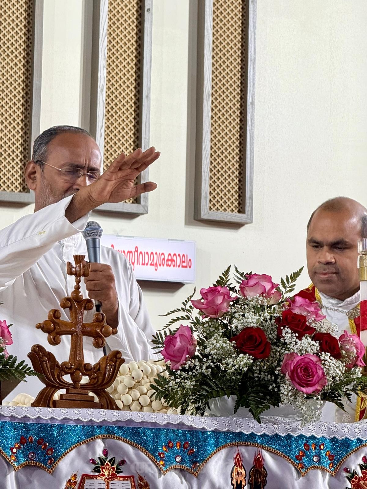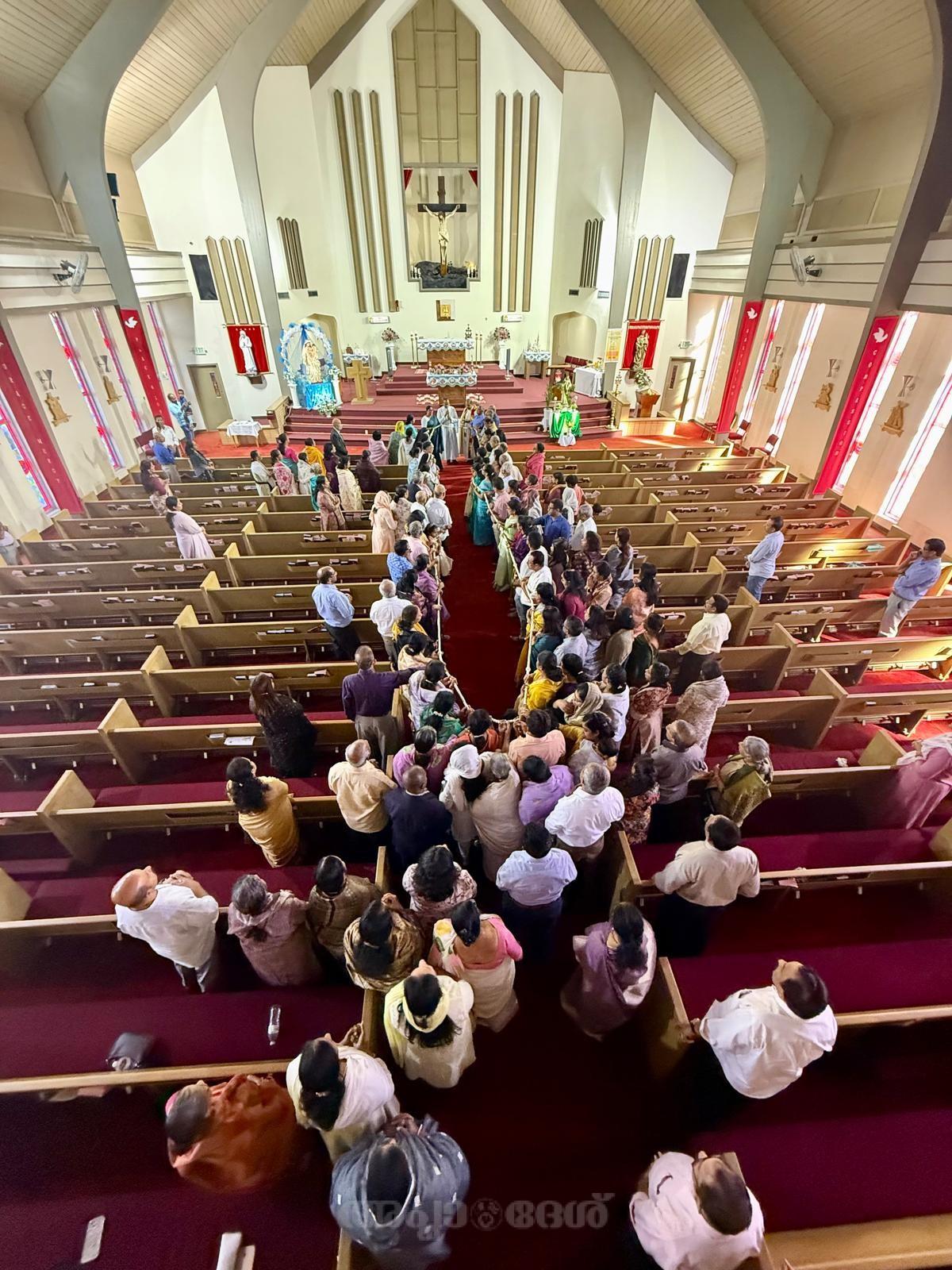 വിശുദ്ധ കുര്‍ബാനയോടുകൂടി ബഹു. വികാരി ഫാ. ബിന്‍സ് ചേത്തലിന്റെ സാന്നിധ്യത്തില്‍ ഫാ.ഡേവിഡ് ചിറമേല്‍ അള്‍ത്താര മുന്‍പില്‍ ആ വലിയ ജപമാല, പ്രാര്‍ഥനയോടെ പ്രതിഷ്ഠിച്ചപ്പോള്‍ സ്വര്‍ഗത്തിലേക്ക് ഉയര്‍ന്നത് ഒരു നാടിന്റെ മുഴുവനും പ്രാര്‍ഥനകളും സ്വപ്നങ്ങളും ദൈവസ്‌നേഹവുമായിരുന്നു. 1250 മുത്തുകളുള്ള നീളന്‍ ജപമാലയും കൈയിലേന്തി ജപമാല ചൊല്ലി ഏറെ ഭക്തിയോടെ വെളുപ്പിനെ 5 മണിക്ക് ആരംഭിച്ച അഖണ്ഡ ജപമാല 9 മണിക്ക് വി.കുര്‍ബാനയോടെയാണ് സമാപിച്ചത്.