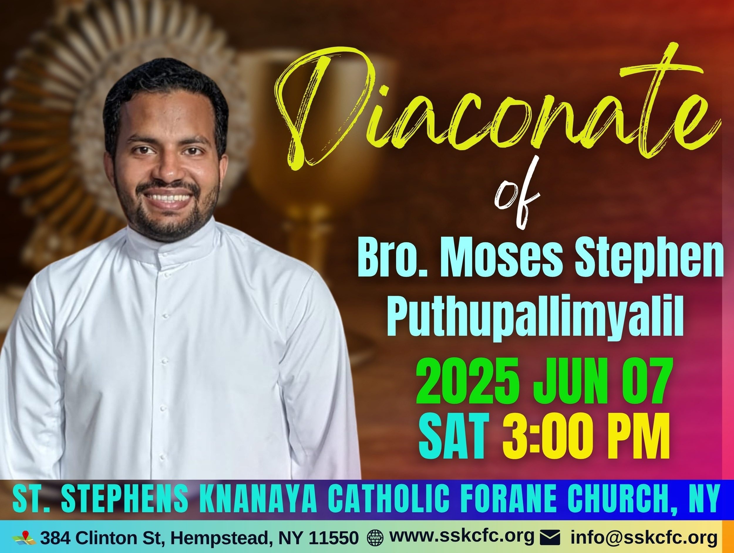 New York: A diaconate ordination service and First Communion ceremonies will be held at St. Stephen’s Catholic Church on Long Island on Saturday, June 7, 2025 at 3 pm