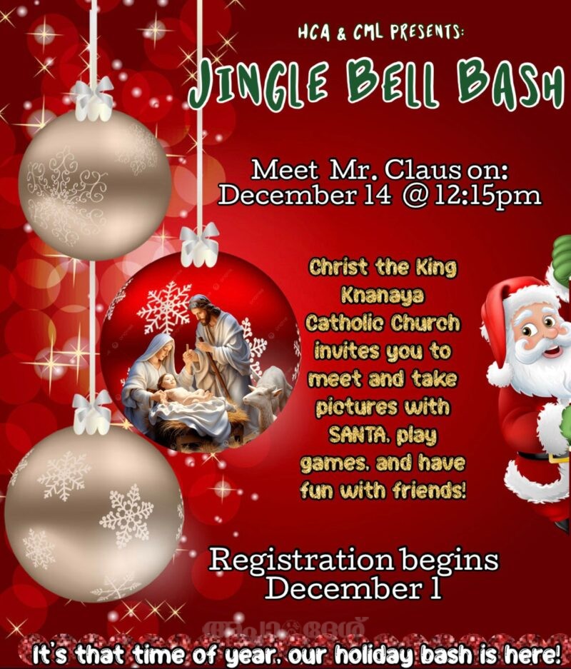ഡാളസ്: ക്രീസ്തു രാജ ക്‌നാനായ കത്തോലിക്ക ഇടവക ദൈവാലയത്തില്‍ തിരുബാലസഖ്യത്തിന്റെയും മീഷന്‍ലീഗിന്റെയും നേതൃത്വത്തില്‍ കുട്ടികള്‍ക്കായ് മീറ്റ് ആന്‍ഡ് ഗ്രീറ്റ് സാന്റ്റാ പ്രാഗ്രാം ഡിസംബര്‍ 14 ഞായര്‍ 12.30 pm ന് നടത്തപ്പെടുന്നു. കുട്ടികള്‍ക്കും മാതാപിതാക്കള്‍ക്കും സാന്റായോടൊപ്പം കുടുംബചിത്രത്തിനും ഒപ്പം ഭക്ഷണത്തിനും അവസരം ഒരുക്കുന്നു. കുട്ടികള്‍ക്കായ് മിനിസ്ട്രിയുടെ നേതൃത്വത്തില്‍ വിവിധ മത്സരങ്ങളും ക്രമീകരിക്കുന്നതാണ്. ഇതിന്റെ രജിട്രേഷന്‍ ഇതിനോടകം ആരംഭിച്ചു. കുട്ടികള്‍ക് ഒരു പുത്തന്‍ അനുഭവം ഈ കൂട്ടായ്മ നല്‍കും എന്ന് മിനിസ്ട്രി എക്‌സിക്യൂട്ടീവ് അംഗങ്ങളോടൊപ്പം വികാരി ഫാ.ബിന്‍സ് ചേത്തലില്‍ അറിയിച്ചു.