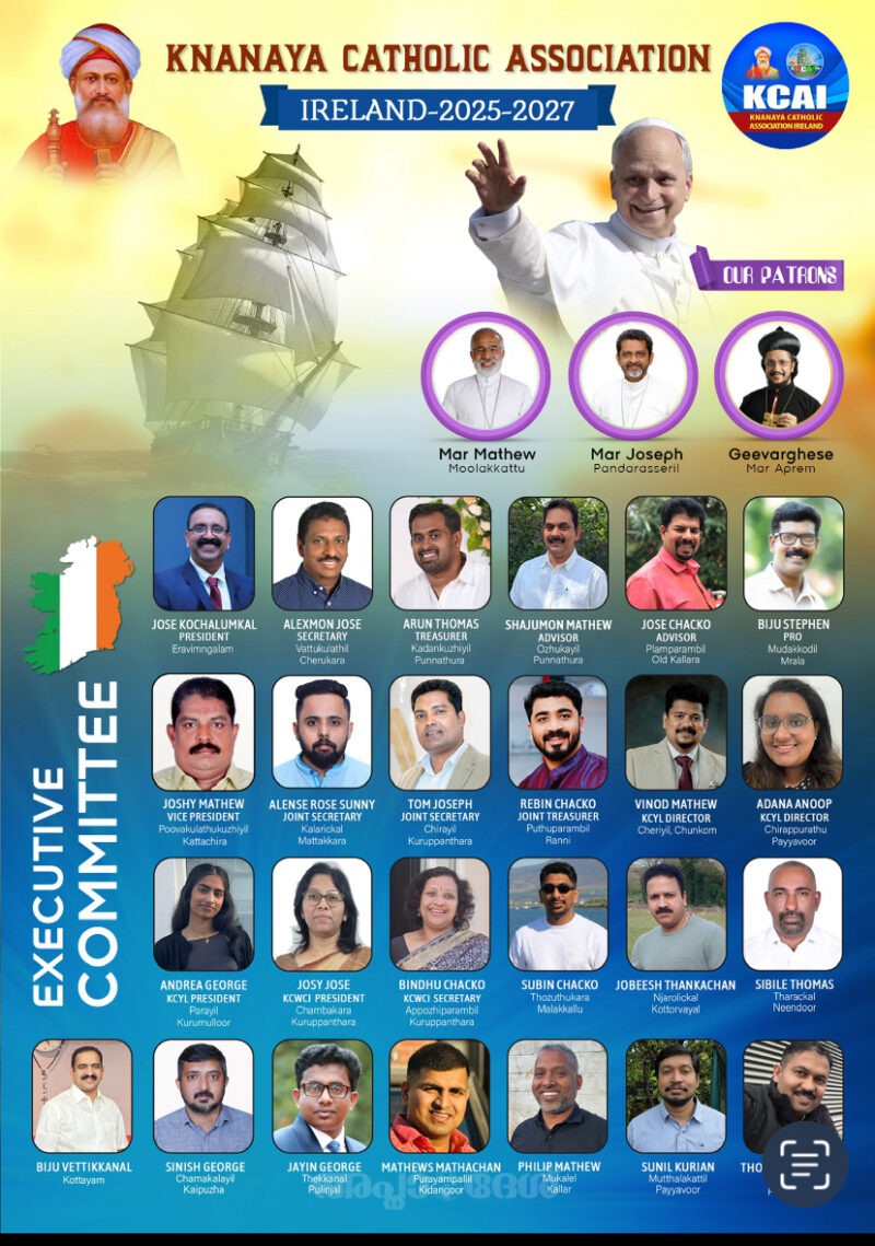 ഡബ്ലിന്: അയര്ലന്ഡിലെ ക്നാനായ സമൂഹത്തിന് പുതിയ ആവേശവും ഉണര്വും പകര്ന്നുകൊണ്ട് 2025-27 കാലഘട്ടത്തിലേക്കുള്ള പുതിയ അസോസിയേഷന് ഭാരവാഹികള് തിരഞ്ഞെടുക്കപ്പെട്ടു.