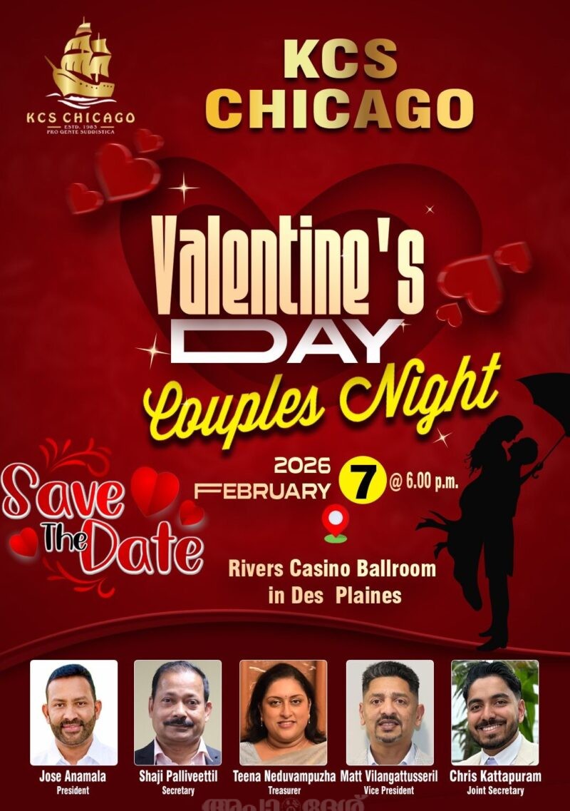 കെ സി എസ് ചിക്കാഗോയുടെ 2026 വാലന്റൈന്സ് ഡേ/ കപ്പിള്സ് നൈറ്റ് ഒരുക്കങ്ങള് തകൃതിയായി നടന്നു വരുന്നു