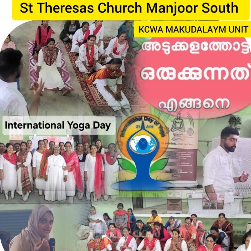 മാഞ്ഞൂര്സൗത്ത്: കെ.സി.ഡബ്ള്യൂ.എ മകുടാലായം യൂണിറ്റിന്്റെ ആഭിമുഖ്യത്തില് ഇന്്റര്നാഷണല് യോഗ ദിനാചരണവും ക്ളാസുകളും നടത്തപ്പെട്ടു. ആരോഗ്യ സംരക്ഷണത്തിന് വിഷരഹിതമായ പച്ചക്കറി ഉല്പാദിപ്പിക്കുവാന് അടുക്കളത്തോട്ടം ഒരുക്കുന്നതിനെ കുറിച്ച് അഗ്രികള്ച്ചര് ഓഫീസര് ഷിജിന വി എം ക്ളാസുകള് നയിച്ചു.