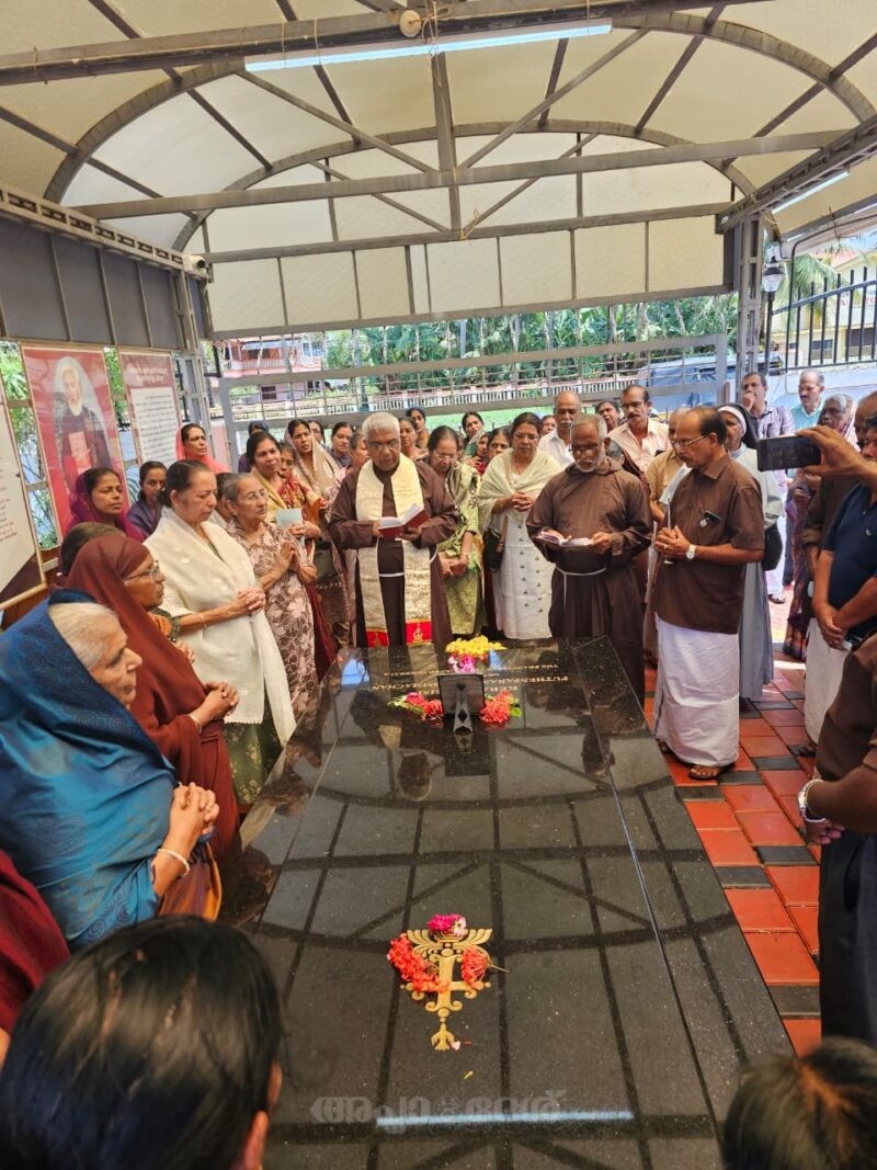 മറ്റക്കര : മണ്ണൂര് സെന്റ് ജോര്ജ് ക്നാനായ കത്തോലിക്ക പള്ളിയിലെ ഫ്രാന്സിസ്കന് അല്മായ സഭാംഗങ്ങളുടെ നേതൃത്വത്തില് ദൈവദാസന് പുത്തന്പറമ്പില് തൊമ്മച്ചന്റെ 117ാം ചരമ വാര്ഷികത്തോട് അനുബന്ധിച്ച് എടത്വ പള്ളിയിലുള്ള കബറിടം സന്ദര്ശിച്ചു. SFO സീറോ മലബാര് കോര്ഡിനേറ്റര് ഫാ മൈക്കിള് പദശ്ശേരിലിന്റെ നേതൃത്യത്തിലുള്ള ദിവ്യബലിയിലും തുടര്ന്നുള്ള അനുസ്മരണ പ്രാര്ത്ഥനയിലും ഫ്രാന്സിസ്കന് അംഗങ്ങള് സംബന്ധിച്ചു.