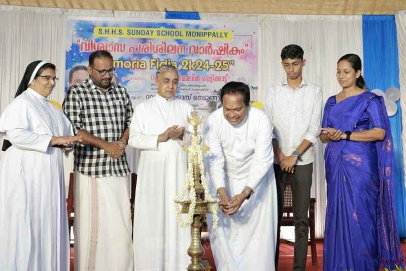 മോനിപ്പള്ളി : എസ്.എച്ച് എച്ച്.എസ് സണ്ഡേ സ്കൂള് വാര്ഷികം കോട്ടയം അതിരൂപത സിഞ്ചിലുസും ദീപിക മാനേജിംഗ് ഡയറക്ടറുമായ ഫാ മൈക്കിള് വെട്ടികാട്ട് ഉദ്ഘാടനം ചെയ്തു.മോനിപ്പള്ളിതിരുഹൃദയ പള്ളി വികാരി ഫാ. ജോസ് നെടുങ്ങാട്ട് അധ്യക്ഷത വഹിച്ചു. സാബു തൊഴുത്തിങ്കല് സ്വാഗതം പറഞ്ഞു. പ്രിന്സിപ്പല് സി. പ്രസന്ന എസ്.ജെ.സി റിപ്പോര്ട്ട ്അവതരിപ്പിച്ചു. പി.ടി.എ പ്രസിഡന്റ് അഡ്വ. ജേക്കബ് സൈമണ് ആശംസ നേര്ന്നു. കുട്ടികളുടെ വിവിധ കലാപരിപാടികളും അരങ്ങേറി. അധ്യാപകരും പി.ടി.എ ഭാരവാഹികളും പരിപാടികള്ക്ക് നേതൃത്വം നല്കി.