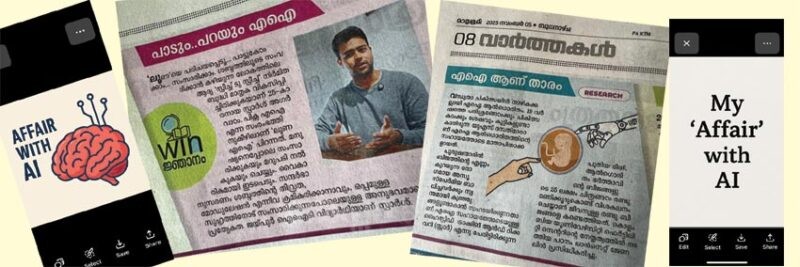 My “affair” with AI ( Artificial Intelligence)began in a very unexpected way. It started when the Malayalam daily Malayala Manorama organised a competition to suggest the Malayalam “Word of the Year” for 2023. I suggested “Nirmitha Budhi”, and to my pleasant surprise, my entry was selected among the winners. That moment felt like my first real meeting with AI, almost like a first date.