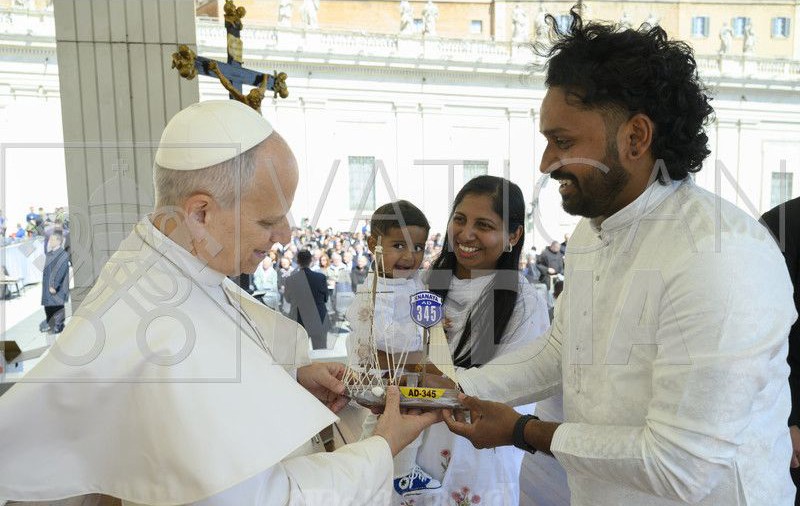 ക്നാനായ കുടിയേറ്റയാത്രയുടെ പ്രതീകമായ കപ്പല് മാതൃക സമ്മാനിച്ച് ആഗോള കത്തോലിക്കാ സഭയുടെ തലവന് ലിയോ 14 -ാമന് മാര്പാപ്പയെ സന്ദര്ശിച്ച് നവ ക്നാനായ കുടുംബം.റോമില് വെച്ച് നടത്തപ്പെട്ട ജനറല് ഓഡിയന്സ് പരിപാടിയിലാണ് കോട്ടയം ക്നാനായ കത്തോലിക്കാ അതിരൂപതയിലെ ചെറുകര ഇടവകാംഗങ്ങളായ പാറയില് ലിബിന് ജോസിനും,മിരാള്ഡക്കും മകന് ജോസഫിനും മാര്പാപ്പയുമായുള്ള പ്രത്യേക കൂടികാഴ്ചയിലൂടെ സന്ദര്ശിക്കാനും സ്നേഹസമ്മാനം നല്കാനും സാധിച്ചത്. മാര്പാപ്പയെ നേരിട്ട് കാണാന് സാധിച്ചത് ജീവിതത്തില് മറക്കാനാവാത്ത ഒരു അനുഭവമായിരുന്നെന്നും,തങ്ങള്ക്ക് ലഭിച്ച അനുഗ്രഹങ്ങള്ക്ക് നന്ദിപറയുവാന് ലഭിച്ച അവസരമായിട്ടുമായാണ് ഈ കൂടികാഴ്ചയെ കാണുന്നതെന്നും ലിബിനും,മിരാള്ഡയും അഭിപ്രായപ്പെട്ടു. വത്തിക്കാന്റ മതാന്തര സംവാദത്തിനായുള്ള ഡിക്കാസ്റ്ററിയുടെ പ്രിഫെക്റ്റായ കര്ദ്ദിനാള് മാര് ജോര്ജ് കൂവക്കാടാണ് ഇരുവര്ക്കും മാര്പാപ്പായെ കാണുവാനുള്ള അവസരം ഒരുക്കിക്കൊടുത്തത്. കൂടികാഴ്ചക്കിടയില് മാര്പാപ്പാ ജോസഫിനെ കയ്യിലിരുത്തി നില്ക്കുന്ന ചിത്രം ലിയോ മാര്പാപ്പയുടെയും,വത്തിക്കാന്റെയും ഔദ്യോധിക സോഷ്യല് മീഡിയായില് പ്രസിദ്ധപ്പെടുത്തുകയും ചിത്രം നിരവധി പേരിലേക്ക് എത്തുകയും ചെയ്തത് ശ്രദ്ധേയമായി.ലിബിന് കോട്ടയം അതിരൂപതയുടെ യുവജന സംഘടനയായ KCYL ന്റെ 2020 മുതല് 2023 വരെയുള്ള കാലഘട്ടത്തിലെ പ്രസിഡന്റായും പ്രവര്ത്തിച്ചിട്ടുണ്ട്.