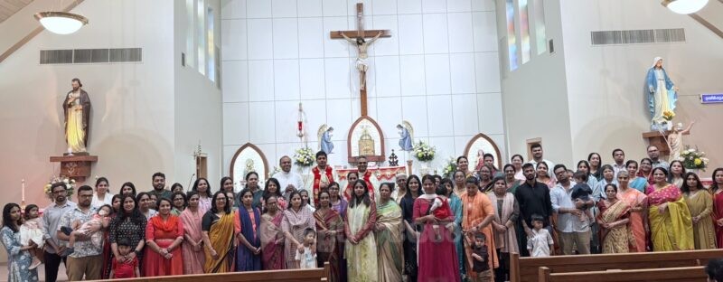 Chicago: Nurses were specially honored and special prayers were offered for them at the Sacred Heart Catholic Church in Bensenville on the occasion of Nurses Week. After the Holy Mass, all the nurses serving in various levels in the health sector were gathered together and specially dedicated to God. Parish priest Fr. Thomas Mulavanal and Asst. Vicar Fr. Bins Chethalil and Fr. Ebin Edamhil were present.
