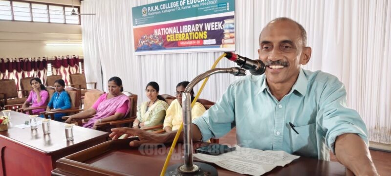മടമ്പം : പി. കെ. എം. കോളേജ് ഓഫ് എഡ്യൂക്കേഷന് സെന്ട്രല് ലൈബ്രറി, എന്. എസ്. എസ്. യുണിറ്റ്, ഐ. ക്യു. എ. സി. എന്നിവ സംയുക്തമായി നവംബര് 14 മുതല് 20 വരെ ആചരിക്കുന്ന ദേശീയ ലൈബ്രററി വാരാഘോഷത്തിന്്റെ ഉത്ഘാടനം കോളേജ് ഓഡിറ്റോറിയത്തില് നടത്തി. കോളേജ് പ്രിന്സിപ്പല് ഡോ. ജെസ്സി എന്. സി. അധ്യക്ഷത വഹിച്ചു. ലൈബ്രറി വാരാഘോഷം തളിപ്പറമ്പ് താലൂക്ക് ലൈബ്രറി കൗണ്സില് സെക്രട്ടറി ഇ. കെ. അജിത്കുമാര് ഉത്ഘാടനം ചെയ്തു. കോളേജ് ലൈബ്രേറിയന് ദീപാ ജോണ് സ്വാഗതം പറഞ്ഞു. എഡ്യൂക്കേഷന് വിഭാഗം അസോസിയേറ്റ് പ്രൊഫസര് ഡോ. മായ ജെ. പിള്ള, യൂണിയന് വൈസ് ചെയര്പേഴ്സണ് നന്ദന സി. എന്നിവര് സംസാരിച്ചു. ലൈബ്രറി ഉപദേശക സമിതി വിദ്യാര്ത്ഥി പ്രതിനിധി ആര്യ കെ. നന്ദി പറഞ്ഞു. ദേശീയ ലൈബ്രറി വാരാചരണത്തോടനുബന്ധിച്ചു ബുക്ക് ഡൊണേഷന്, വിദ്യാര്ത്ഥികള്ക്ക് വിവിധ മത്സരങ്ങള് എന്നിവ നടത്തപ്പെടുന്നു.