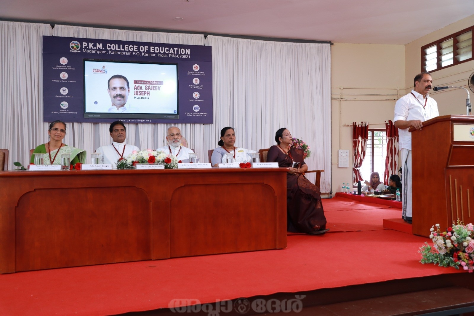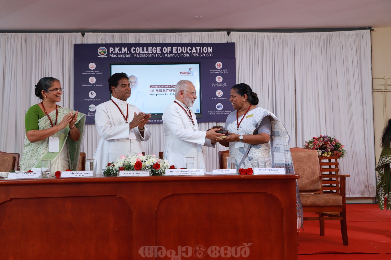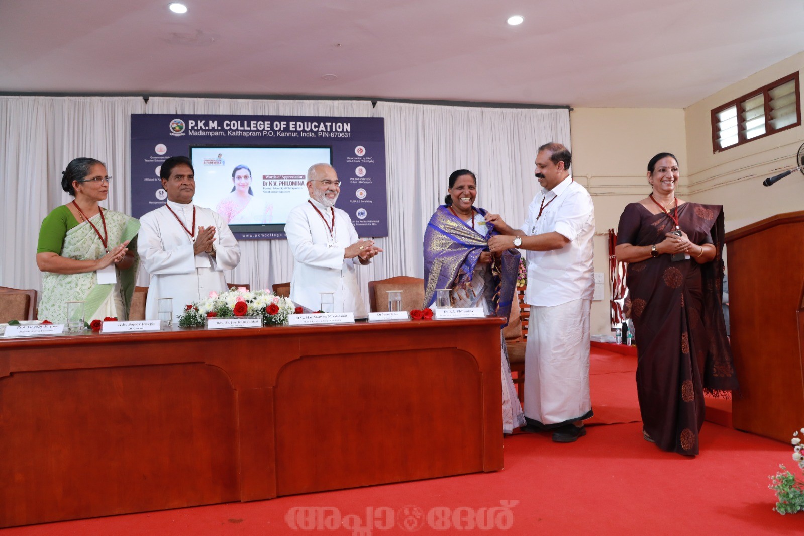 മടമ്പം: പ്രൊഫസര്‍ വി.ജെ. ജോസഫ് കണ്ടോത്ത് സ്മാരക (പി.കെ.എം.) കോളേജ് ഓഫ് എഡ്യൂക്കേഷനില്‍ ഷെവലിയാര്‍ പ്രൊഫസര്‍ വി.ജെ.ജോസഫ് കണ്ടോത്ത് അനുസ്മരണവും ഈ വര്‍ഷം വിരമിക്കുന്ന പ്രിന്‍സിപ്പാള്‍ ഡോ.ജെസ്സി എന്‍.സി. ക്കുള്ള യാത്രയയപ്പും സംയുക്തമായി കോളേജ് ഓഡിറ്റോറിയത്തില്‍ വെച്ച് നടത്തി. ഇരിക്കൂര്‍ എം.എല്‍.എ. അഡ്വ.സജീവ് ജോസഫ് സമ്മേളനം ഉത്ഘാടനം ചെയ്തു. കോളജ് പ്രൊ- മാനേജര്‍ ഫാ. ജോയി കട്ടിയാങ്കല്‍ അധ്യക്ഷത വഹിച്ചു. കോട്ടയം അതിരൂപത മാര്‍ മാത്യു മൂലക്കാട്ട് പ്രൊഫസര്‍ വി. ജെ. കണ്ടോത്ത് അനുസ്മരണ പ്രഭാഷണം നടത്തി. പ്രൊഫസര്‍ കണ്ടോത്തിന്‍്റെ സംഭാവനകളെ പിതാവ് അനുസ്മരിച്ചു.കോളേജ് വൈസ് പ്രിന്‍സിപ്പാള്‍ ഡോ. പ്രശാന്ത് മാത്യു ആമുഖ പ്രഭാഷണം നടത്തി. ശ്രീകണ്ടാപുരം മുന്‍സിപ്പാലിറ്റി മുന്‍ ചെയര്‍പേഴ്സണ്‍ ഡോ.കെ.വി.ഫിലോമിന, കാരിത്താസ് സെക്കുലര്‍ ഇന്‍സ്റ്റിറ്റ്യൂട്ട് ഡയറെക്ട്രെസ്സ് ജനറല്‍ പ്രൊഫ. സിസ്റ്റര്‍ ലിസി ജോണ്‍ എന്നിവര്‍ ആശംസകളര്‍പ്പിച്ചു.വിരമിക്കുന്ന പ്രിന്‍സിപ്പലിന് കോളേജ് സ്റ്റാഫ് അസോസിയേഷന്‍ മോമെന്‍്റോയും പാരിതോഷികവും നല്‍കി.കോളേജ് ഐ.ക്യു.എ.സി. കോഓര്‍ഡിനേറ്റര്‍ ഡോ.വീണ അപ്പുകുട്ടന്‍ ചടങ്ങിന് നന്ദി അര്‍പ്പിച്ചു.നാക് അക്രെഡിറ്റേഷനില്‍ തുടര്‍ച്ചയായി മൂന്നു തവണ എ ഗ്രേഡ്, കേരളത്തിലെ അദ്ധ്യാപക പരിശീലന സ്ഥാപനങ്ങളുടെ റാങ്കിങ്ങില്‍ മൂന്നാം സ്ഥാനം,കേരള ഹരിത മിഷന്‍ന്‍്റെ എ ഗ്രേഡ് ഹരിത കലാലയം അവാര്‍ഡ്, കേരള ഗവണ്‍െമന്‍്റ് എക്സലന്‍സ് അവാര്‍ഡ് തുടങ്ങി നിരവധി നേട്ടങ്ങളിലേക്കു കോളേജിനെ നയിച്ച വ്യക്തിയാണ് ഡോ. ജെസ്സി എന്‍.സി. 26 വര്‍ഷത്തെ അദ്ധ്യാപന ജീവിതവും 8 വര്‍ഷമായി പ്രിന്‍സിപ്പല്‍ പദവിയും വഹിച്ചു വിരമിക്കുന്ന ഡോ. ജെസ്സി എന്‍.സി.ക്ക് ആശംസകളര്‍പ്പിക്കാന്‍ കോളേജുമായി ബന്ധപ്പെട്ടു പ്രവര്‍ത്തിക്കുന്ന വിവിധ മേഖലകളില്‍നിന്നുള്ള പ്രതിനിധികള്‍, പൂര്‍വവിദ്യാര്‍ഥി പ്രതിനിധികള്‍ തുടങ്ങിയവര്‍ സമ്മേളനത്തില്‍ പങ്കെടുത്തു.