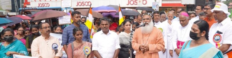 ഭിന്നശേഷി സംവരണവുമായി ബന്ധപ്പെട്ട് 2018 മുതലുള്ള അധ്യാപക നിയമനങ്ങള്‍ ക്രമപ്പെടുത്താതെ അധ്യാപകരെ പെരുവഴിയിലാക്കുന്ന സര്‍ക്കാര്‍ നയത്തിനെതിരെയാണ് പ്രതിഷേധ സമരം സംഘടിപ്പിച്ചത്. ഗാന്ധി സ്ക്വയര്‍ മുതല്‍ കലക്രേ്ടറ്റ് വരെ അയ്യായിരത്തോളം അധ്യാപക / അനധ്യാപകര്‍ വായ മൂടിക്കെട്ടി റാലിയില്‍ പങ്കെടുത്താണ് തങ്ങളുടെ പ്രതിഷേധം അറിയച്ചത്. ഗാന്ധി സ്ക്വയറില്‍ നിന്നാരംഭിച്ച റാലി വിജയപുരം രൂപത സഹായ മെത്രാന്‍ ഡോ. ജസ്റ്റിന്‍ മഠത്തില്‍പറമ്പില്‍ ഫ്ളാഗ് ഓഫ് ചെയ്തു. അധ്യാപകര്‍ക്ക് അഭിമാനബോധത്തോടെ ജോലി ചെയ്യാനുള്ള സാഹചര്യമൊരുക്കണമെന്ന് അദ്ദേഹം സര്‍ക്കാരിനോടാവശ്യപ്പെട്ടു. കലക്രേ്ടറ്റിനു മുമ്പില്‍ ചേര്‍ന്ന പ്രതിഷേധ സമ്മേളനത്തില്‍ കേരളാ കാത്തലിക് ടീച്ചേഴ്സ് ഗില്‍ഡ് സംസ്ഥാന പ്രസിഡണ്ട് ടോം മാത്യു അധ്യക്ഷത വഹിച്ചു. ഫാ. മാത്യു ചന്ദ്രന്‍കുന്നേല്‍ മുഖ്യപ്രഭാഷണം നിര്‍വ്വഹിച്ചു. കലക്രേ്ടറ്റിനു മുമ്പിലേക്ക് വായ മൂടിക്കെട്ടി പ്രതിഷേധ റാലി സംഘടിപ്പിച്ച അധ്യാപകരുടെ സമരപരിപാടി ഗാന്ധിജി നടത്തിയ ദണ്ഡിയാത്രയെ അനുസ്മരിപ്പിക്കുന്നുവെന്നും ഇനിയും അധ്യാപകരെ വെയിലത്തു നിര്‍ത്തിയാല്‍ വോട്ടു ചോദിച്ചു വരുമ്പോള്‍ ഉത്തരം ലഭിക്കുമെന്നും അദ്ദേഹം ഓര്‍മ്മിപ്പിച്ചു. കാഞ്ഞിരപ്പള്ളി കോര്‍പ്പറേറ്റ് മാനേജര്‍ ഫാ. ഡൊമിനിക് ഐലൂപ്പറമ്പില്‍, സുജി പുല്ലുകാട്ട് (കോട്ടയം), ബിബിന്‍ ബെന്നി (പാല ഷൈനി കുര്യാക്കോസ് ,ജോബി വര്‍ഗ്ഗീസ് (പാലാ) , വിന്‍സന്‍്റ് ജോര്‍ജ് (കാഞ്ഞിരപ്പള്ളി ) തുടങ്ങിയവര്‍ പ്രസംഗിച്ചു. കോര്‍പ്പറേറ്റ് മാനേജര്‍മാരായ ഫാ. ജോര്‍ജ് പുല്ലുകാലായില്‍ (പാല ), ഫാ. ആന്‍്റണി പാട്ടപ്പറമ്പില്‍ ( വിജയപുരം), ഫാ. തോമസ് പുതിയാകുന്നേല്‍ (കോട്ടയം), ഫാ. ആന്‍്റണി മൂലയില്‍ (ചങ്ങനാശ്ശേരി) എന്നിവരും ടീച്ചേഴ്സ് ഗില്‍ഡ് പ്രസിഡന്‍്റുമാരായ ബിജു വി.എം. (വിജയപുരം), ഈശോ തോമസ് (ചങ്ങനാശ്ശേരി) തുടങ്ങിയവരോടൊപ്പം ടീച്ചേഴ്സ് ഗില്‍ഡ് സംസ്ഥാന ഭാരവാഹികളും രൂപത സെക്രട്ടറിമാരും ഭാരവാഹികളും നേതൃത്വം നല്‍കി.