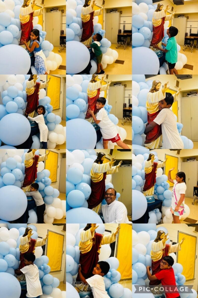 സ്വര്ഗത്തിലെ യേശുവിനെ നേരില് കാണുമ്പോള് എങ്ങിനെ അഭിവാദ്യം ചെയും? ബെന്സന്വില്തിരുഹൃദയ ക്നാനായ കത്തോലിക്കാ ഇടവകയിലെ കുട്ടികള്ക്ക് ഇങ്ങിനെ ഒരു ചിന്തയുണ്ടായി . അത് അവര് വ്യത്യസ്തമായി നടപ്പില് വരുത്തി. കൈകള് നീട്ടീ നില്ക്കുന്ന ഈശോയുടെ ഒരു വലിയ തിരുഹൃദയ രൂപം ഒരു ക്ലാസ്സ് റൂമില് ക്രമീകരിച്ചു. അടച്ച ക്ലാസ്സ് റൂമിന്റെ പുറത്ത് കുട്ടികള് നിരയായി നിന്നു. അകത്തു പ്രവേശിച്ചപ്പോള് വിരിച്ച കരങ്ങളോടെ കാത്തു നില്ക്കുന്ന യേശുവിനെ കണ്ട കുഞ്ഞുങ്ങളുടെ പ്രതികരണം പലവിധമായിരുന്നു. തുറന്ന വാതിലിലൂടെ ചില കുട്ടികള് യേശുവിനെ വാരിപ്പുണരാന് അടുത്തേയ്ക്ക് ഓടി, ചിലര് മിതത്വം പാലിച്ച് പാദങ്ങളില് ചുംബിക്കുകയോ, വണങ്ങുകയോ ചെയ്തു. ചിലര് കൈകളില് സ്പര്ശിച്ചു . ക്യാമ്പില് ഇടവേള സമയങ്ങളില് പോലും ഇത് ഇഷ്ടപ്പെട്ട കുട്ടികള് ഈ പുണ്യകര്മ്മം ആവര്ത്തിച്ചുകൊണ്ടിരുന്നു. കണ്ടു നിന്ന അദ്ധ്യാപകര്ക്കും മാതാപിതാക്കള്ക്കും ഇത്ഒരു നവ്യാനുഭവമായിരുന്നു. യുവജനങ്ങളുടെ നേതൃത്വത്തില് നടത്തപ്പെട്ട ‘രാരീരം’പരിപാടിയിലായിരുന്നു ഹൃദയസ്പര്ശിയായ ഈ സംഭവം നടത്തപ്പെട്ടത്.